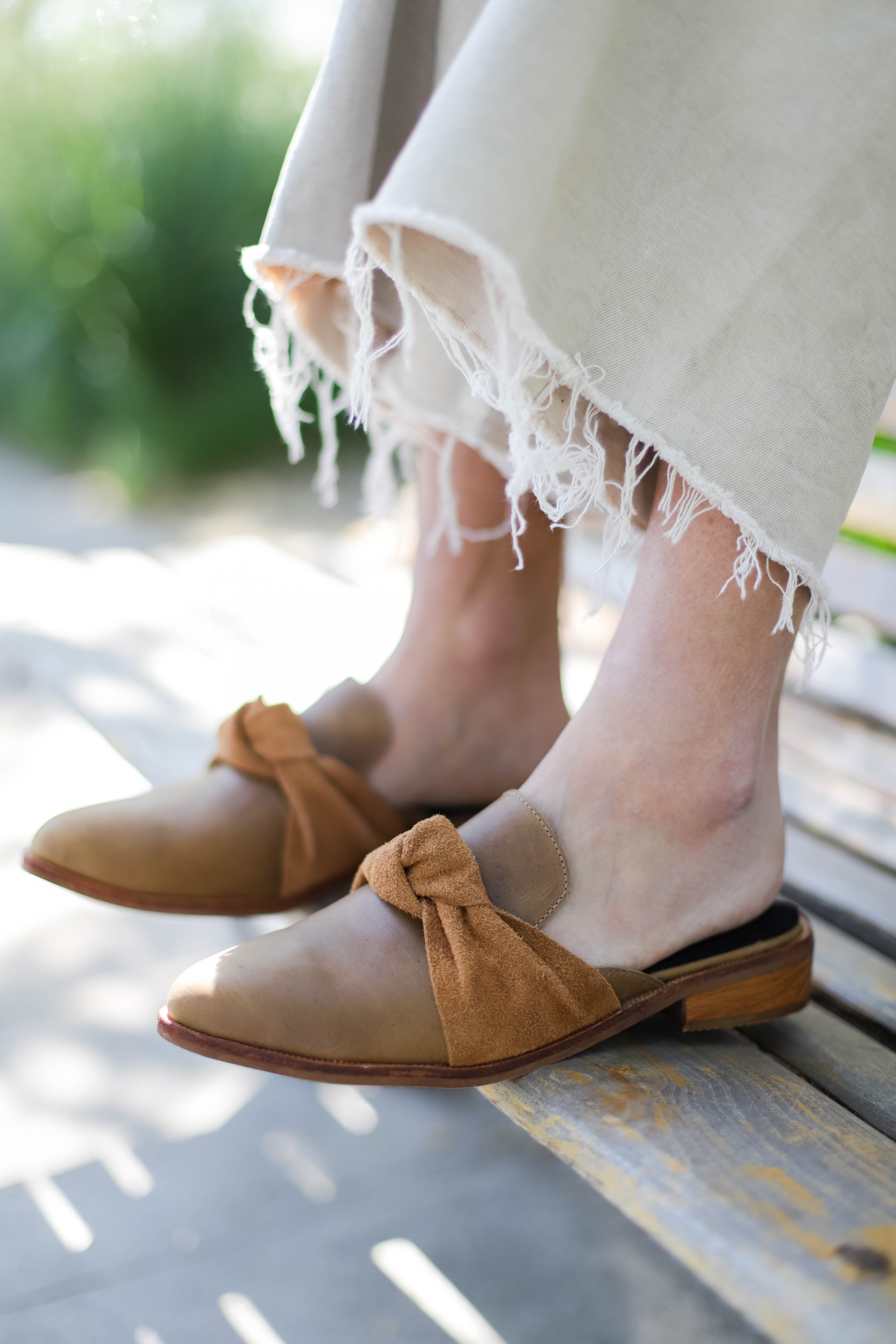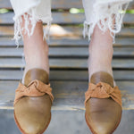 Las Atenas son sinónimo de comodidad y estilo sin esfuerzo. Su diseño en cuero color miel con un delicado moño de gamuza las hace únicas, combinando lo artesanal con un toque moderno y femenino.