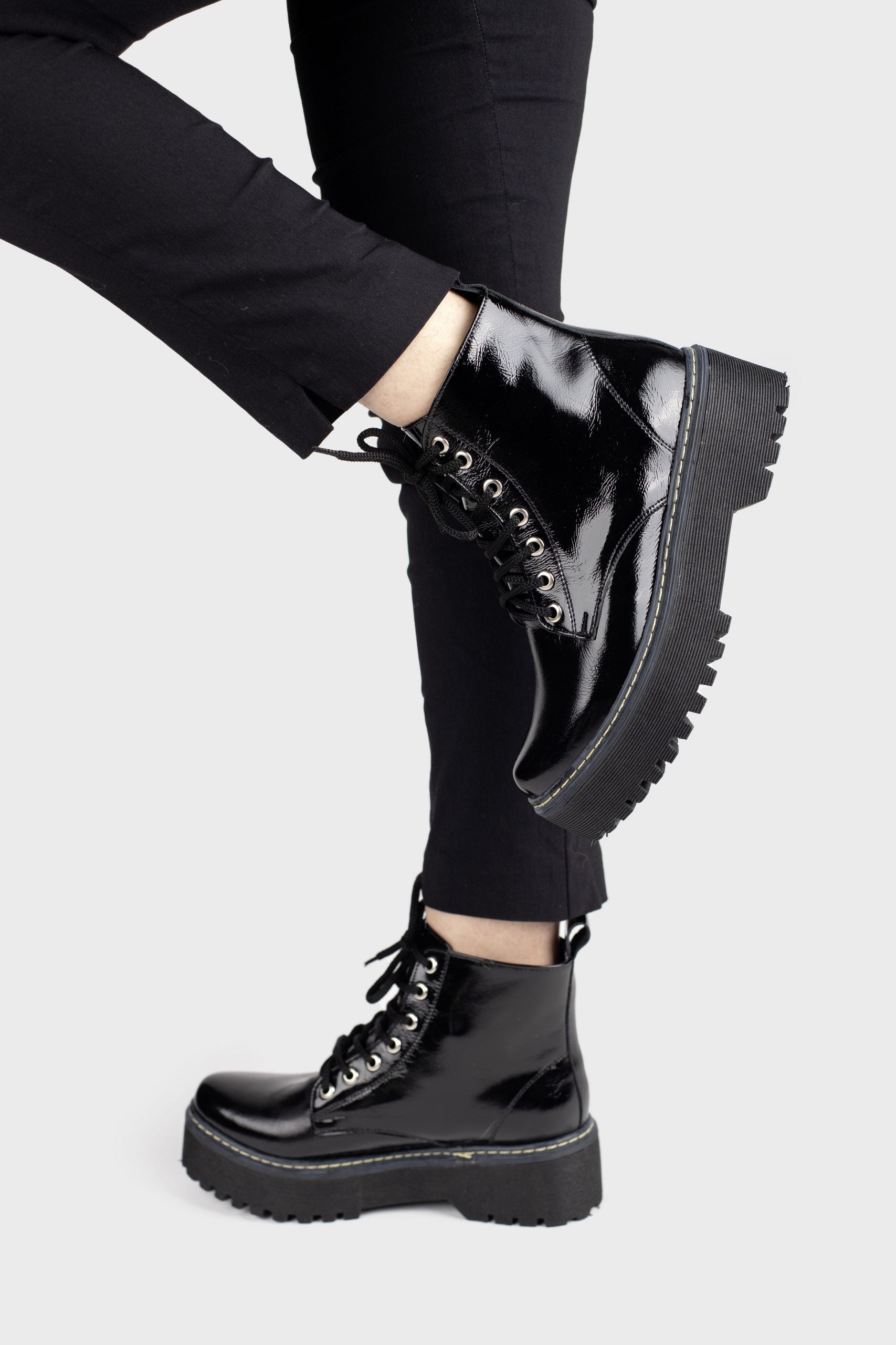 El detalle de los cordones, que recorren el bototo completamente, añade un toque de estilo clásico y elegante que nunca pasa de moda, mientras que la plataforma asegura una silueta estilizada y un ajuste cómodo. Con los bototos "Berlín", disfrutarás de una combinación de elegancia y confort, destacando con confianza en cualquier ocasión.