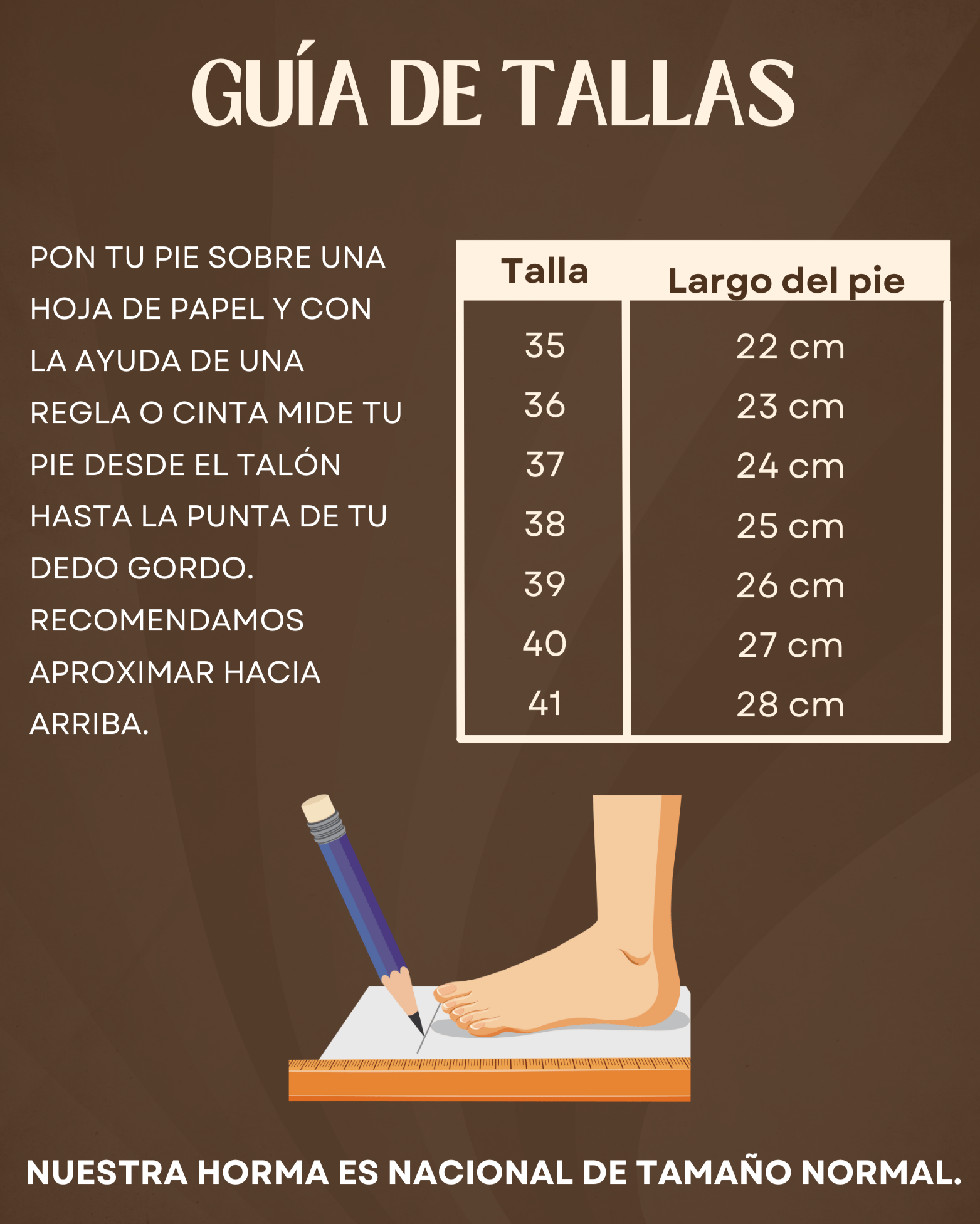 Antes de comprar, por favor revisa detalladamente nuestra guía de tallas.