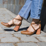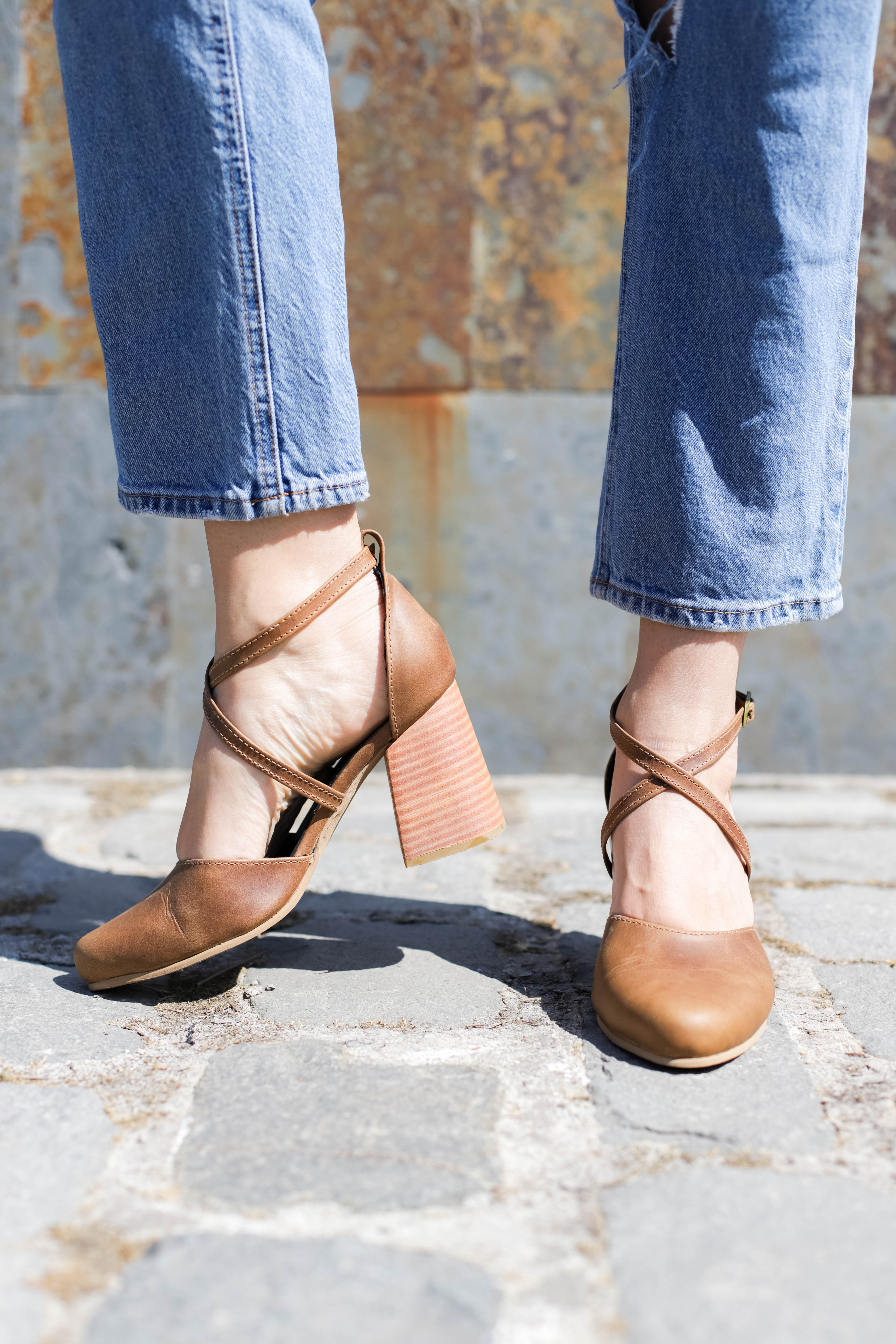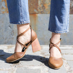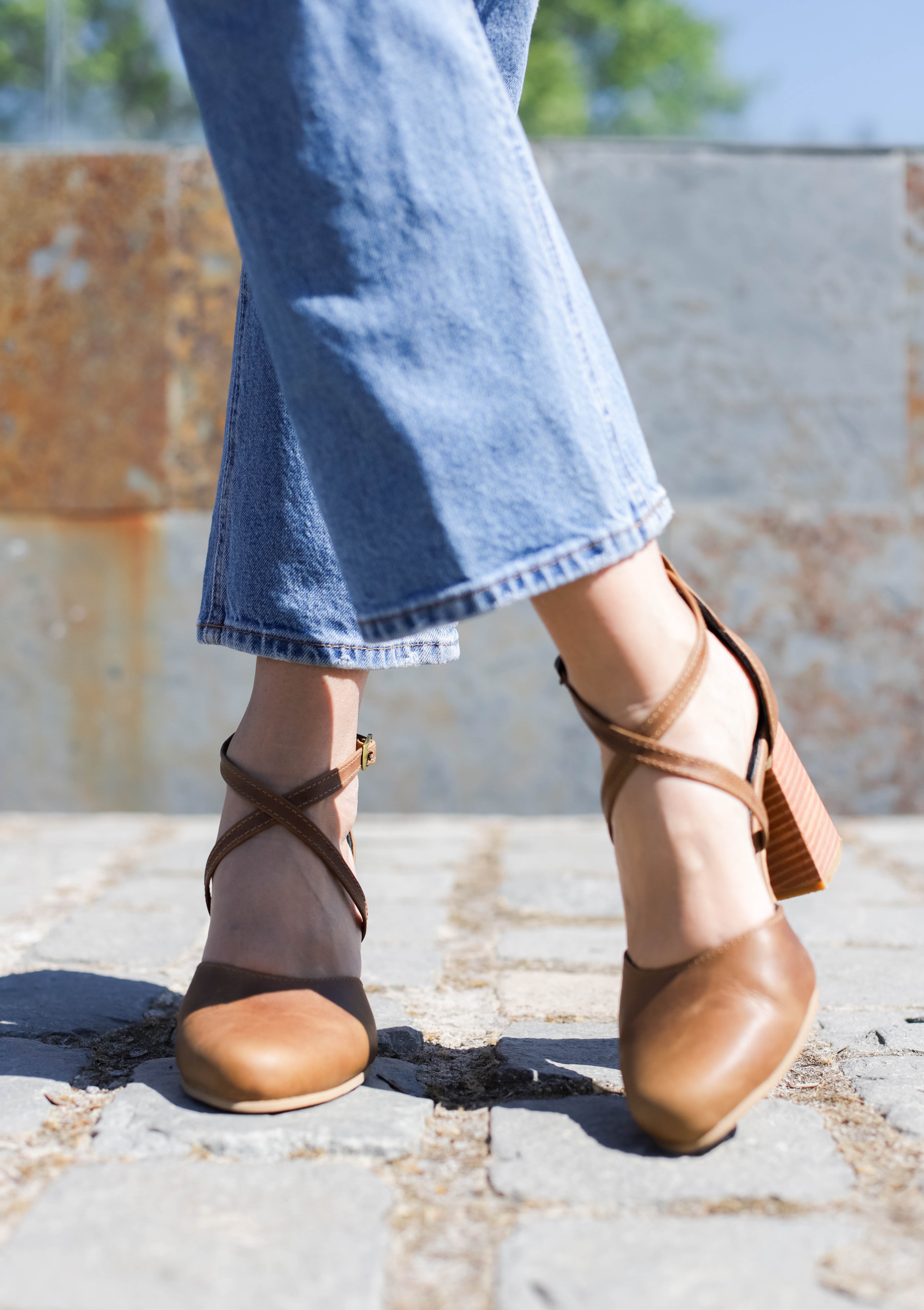 Las Amalfi son la combinación perfecta entre elegancia y comodidad. Su diseño en cuero gamuzado color caramelo, con tiras cruzadas ajustables, realza el empeine y brinda un calce firme y femenino.