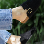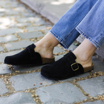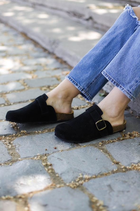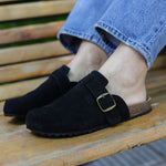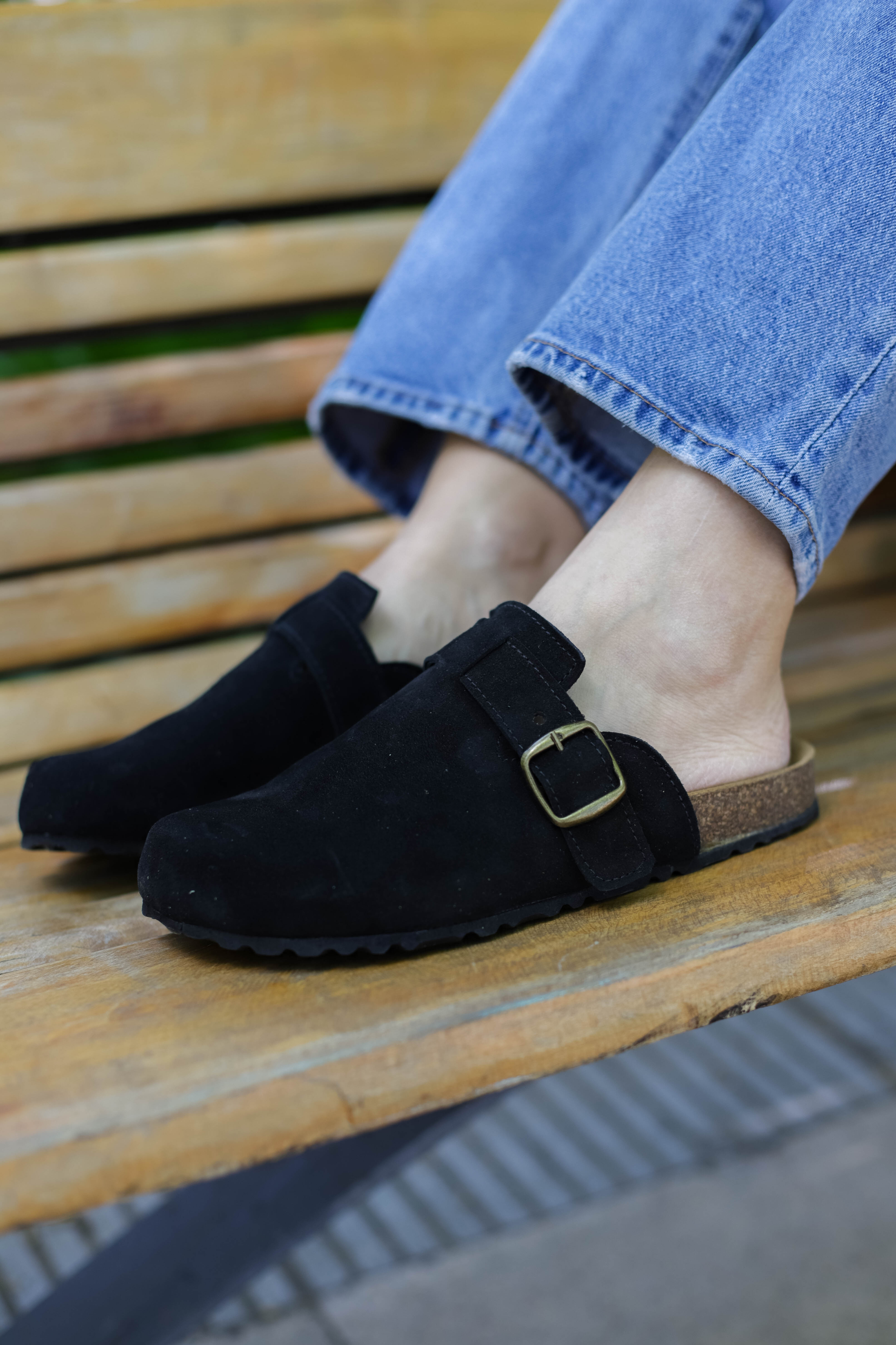 Las Sevilla son pura comodidad desde el primer paso. Hechas en cuero gamuzado negro, su diseño con hebilla ajustable se adapta perfectamente a tu pie, dándote un calce firme y cómodo todo el día.
